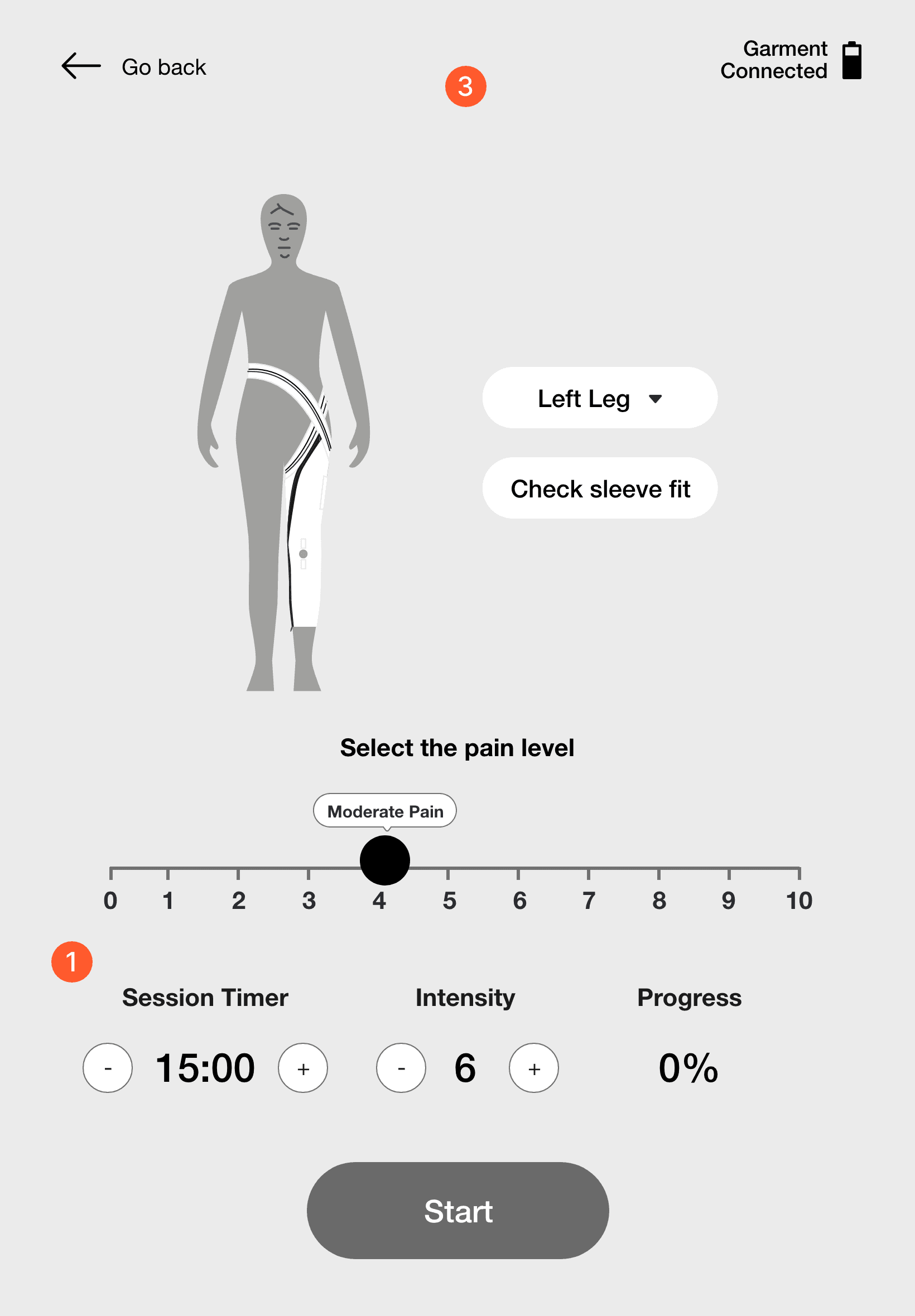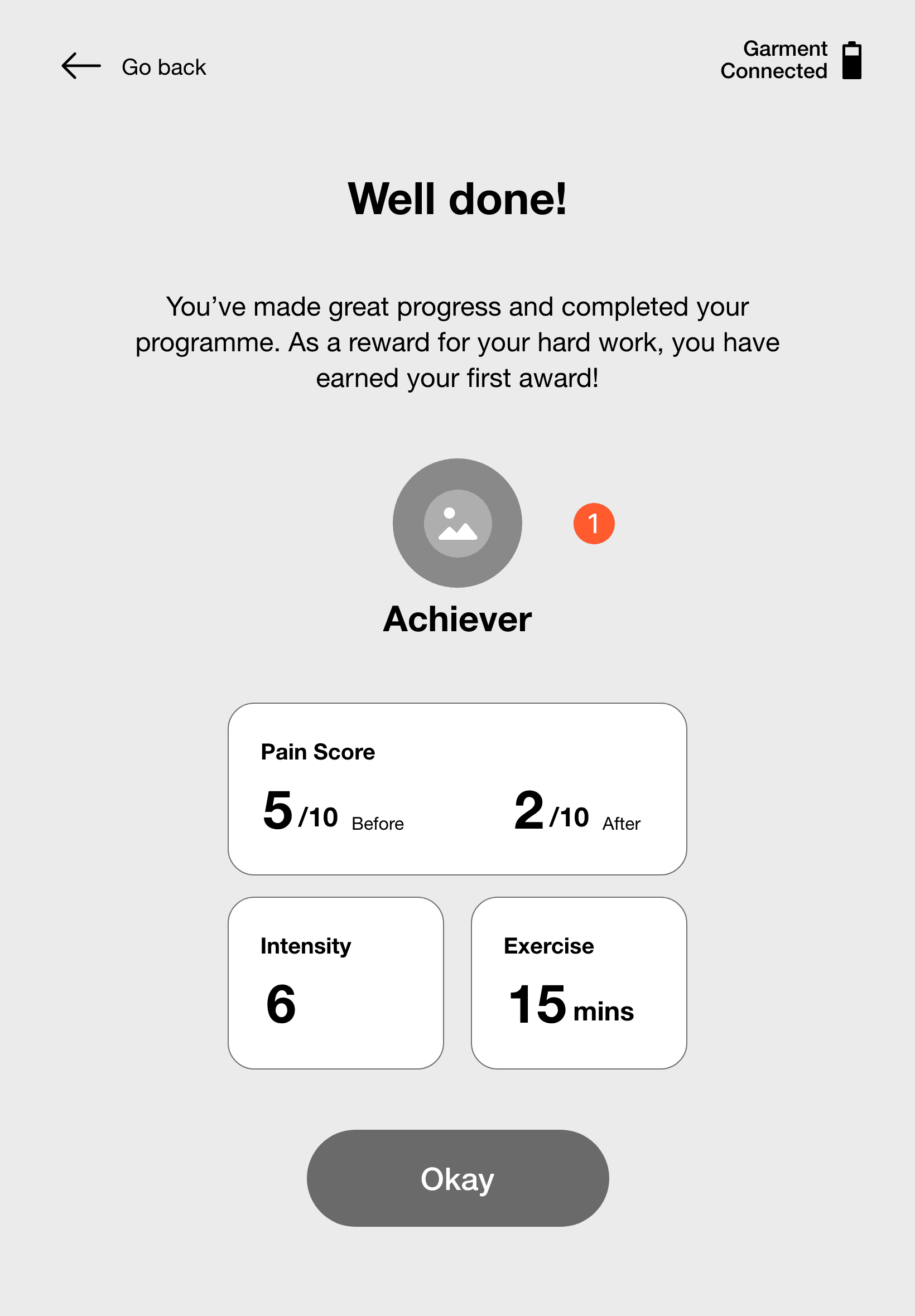A therapy session is not just a digital interaction. It happens in a physical, vulnerable and often cognitively loaded context. Linda is wearing a medical garment, managing pain, and using a device that she fears getting wrong. Designing for this meant optimising not just for usability, but for confidence and error prevention.